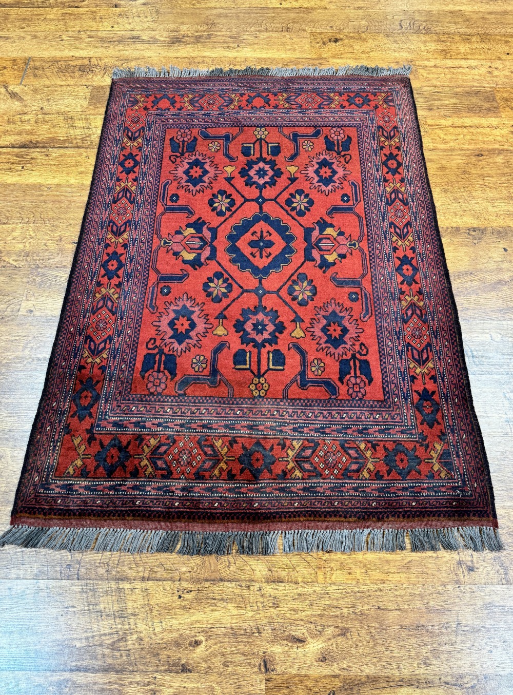 Стиль ковра, стремящийся передать и сочетать одновременно монументальный дух, роскошь и при этом отсутствие излишеств. Такие грубые на первый взгляд элементы узора и цвет ковра образовали вполне характерный стиль, который сегодня ни с чем не спутаешь.