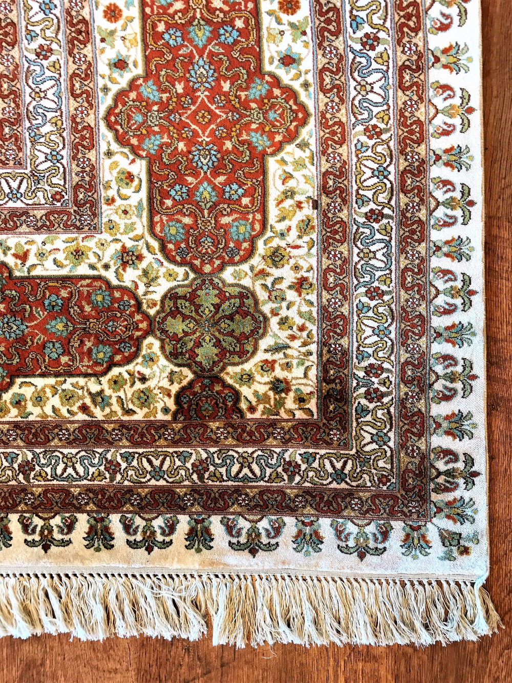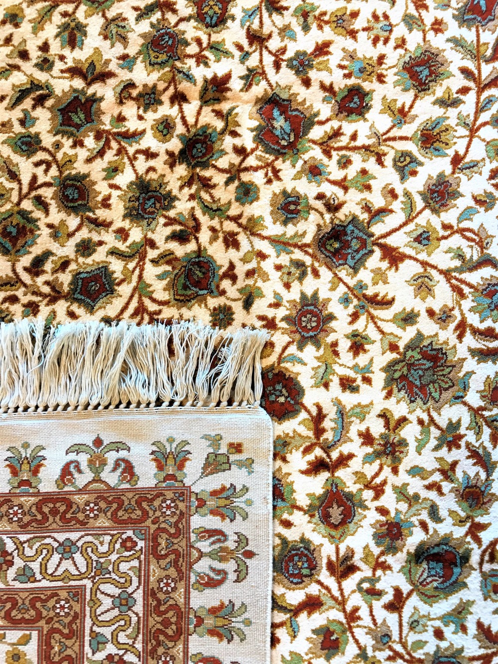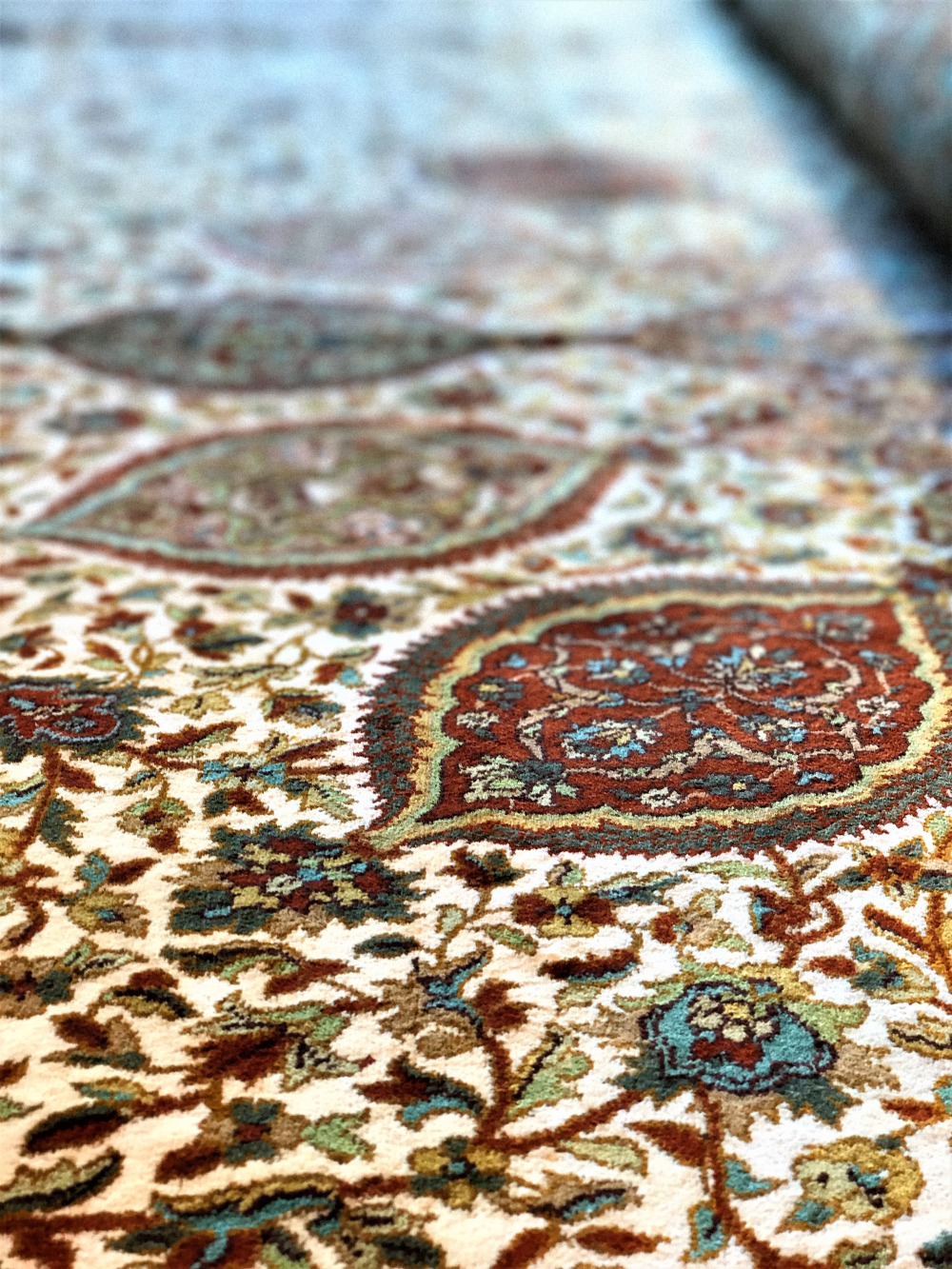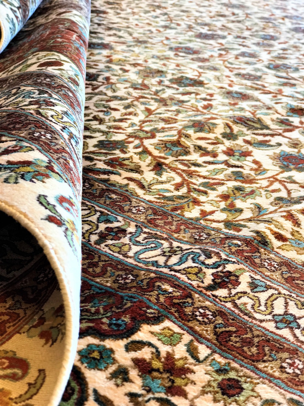 Оригинальный Ковер Ardabil находится в Музей Виктории и Альберта, Лондон.Это старейший в мире ковер и один из самых больших, самых красивых и истории. Каждая часть дизайна заполнена одним или несколькими типами набора прокрутки с фантастическими завихряющимися цветами или листьями, характерными для ранней династии Сефевидов. В некоторых есть также симметричные змеиные формы, представляющие облака.