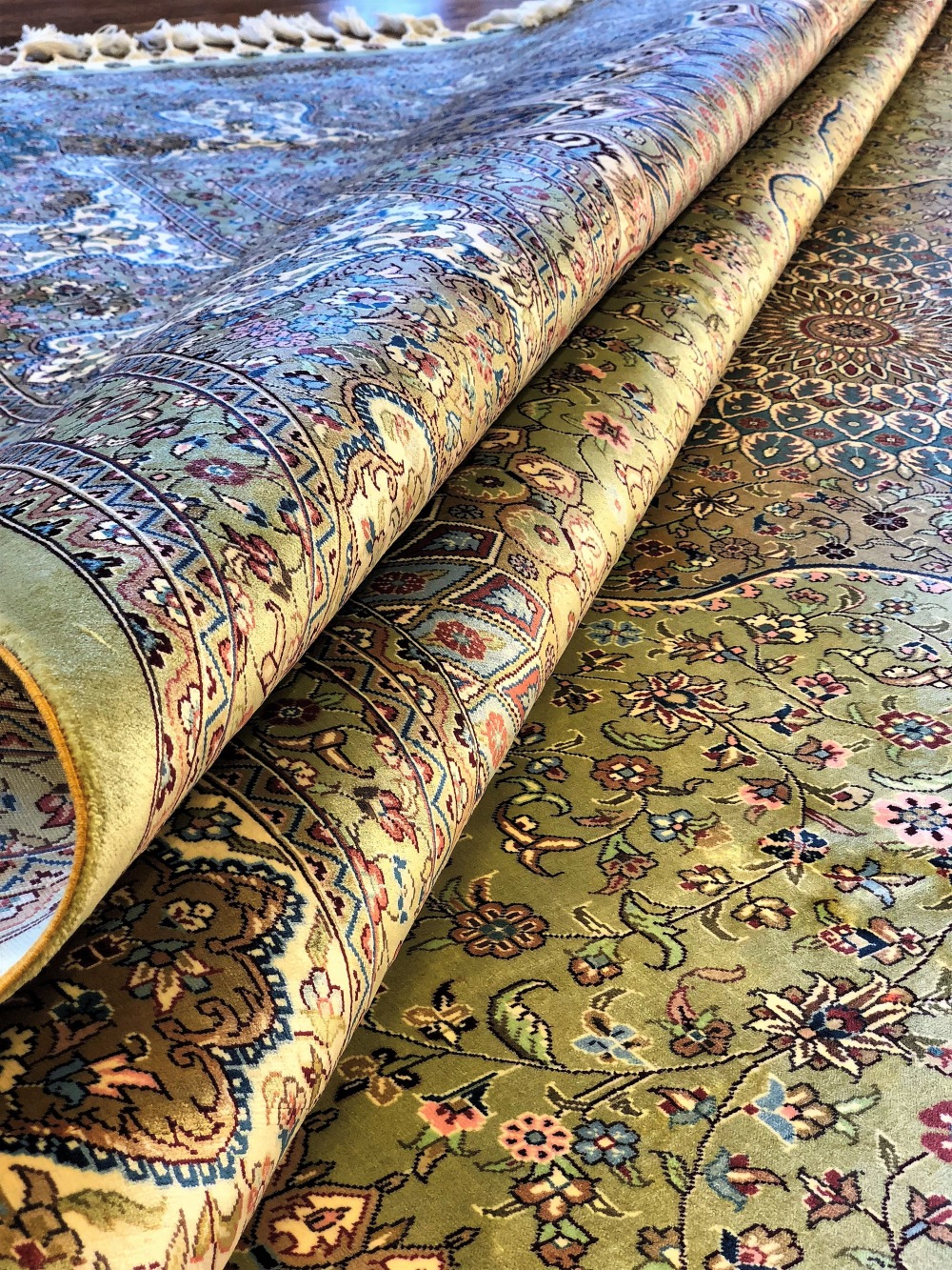 Шелковые ковры, сотканные вручную с замысловатым цветочным узором, это лучшая покупка, особенно если вы ищете прочность.