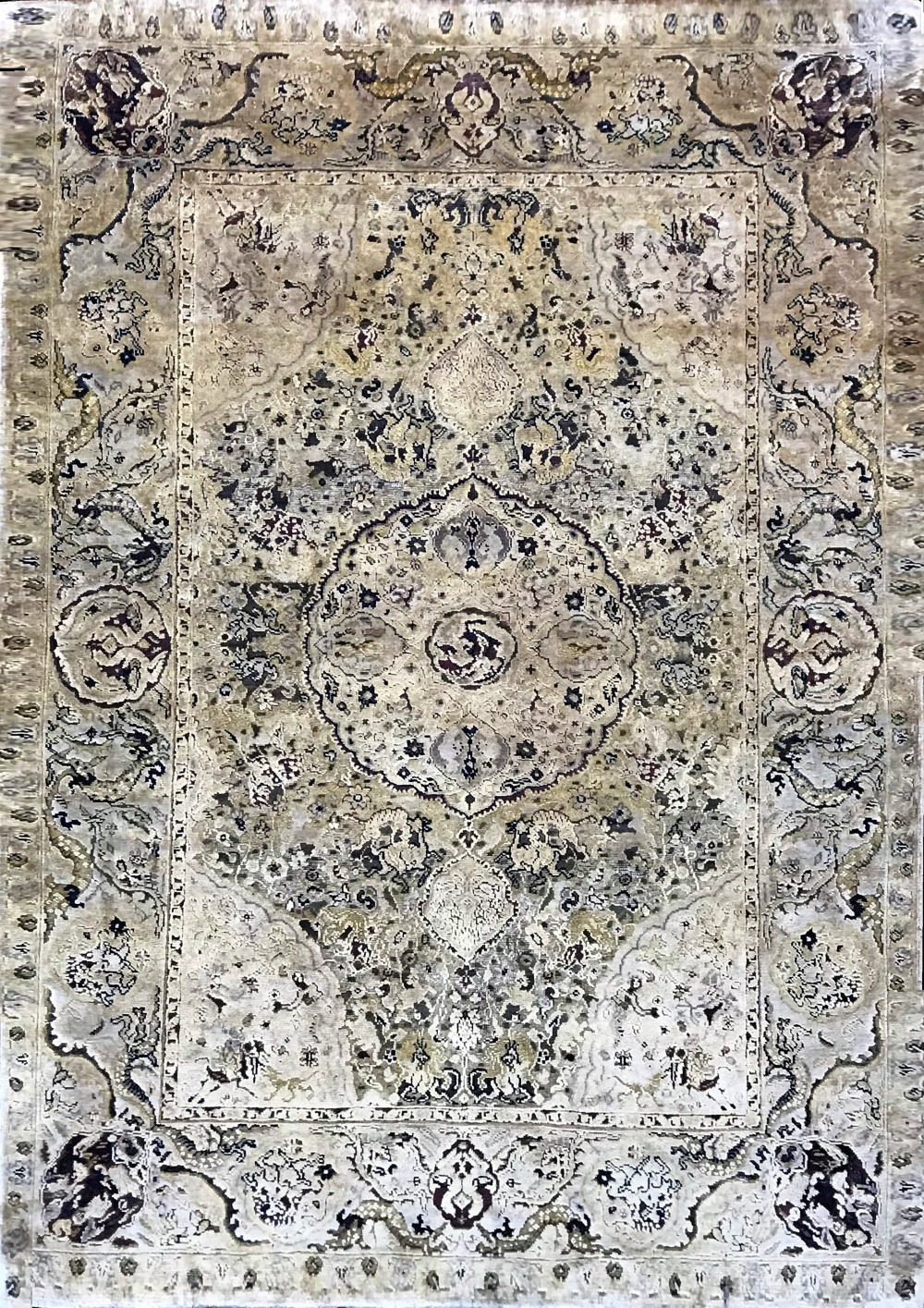 Дизайны этой коллекции и сейчас можно встретить на легендарных европейских аукционахМастера с трепетом подходят к выбору шерсти, красителей ну и конечно же самих дизайнов будущих ковров, ведь патроны (точный нарисованный вручную ковер) как правило передается мастерами по наследству.